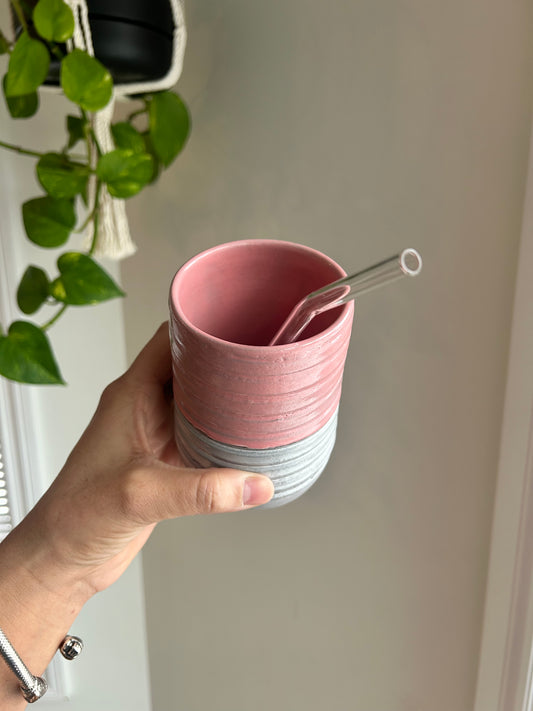 Hot Pink/White Pottery Tumbler
