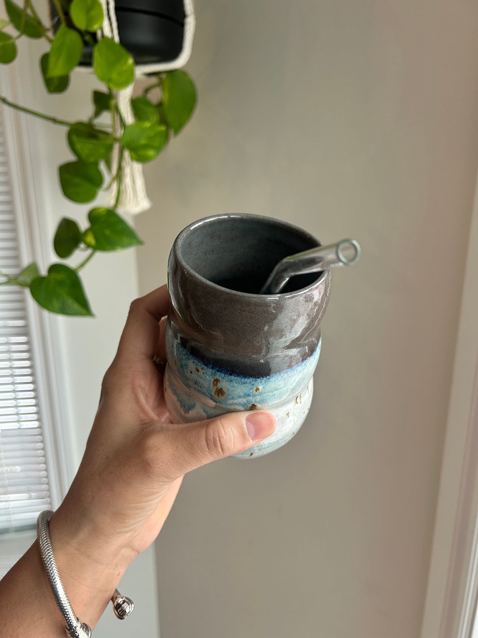 Hand thrown and hand painted pottery tumbler. Perfect for those cold summer drinks!