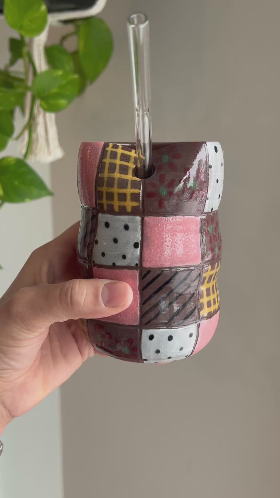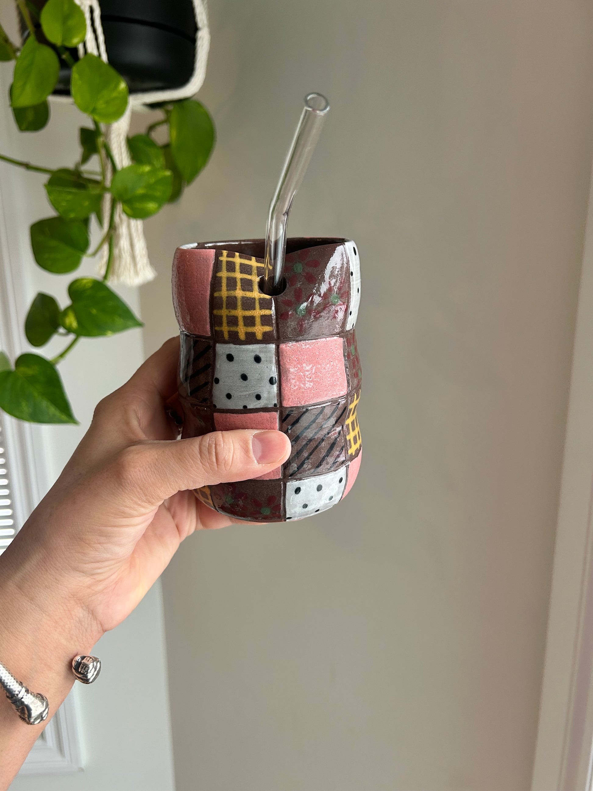 Hand thrown pottery tumbler. These are a labour of love! They take forever to paint, so someone who appreciates art will LOVE this! Perfect for cold summer drinks.